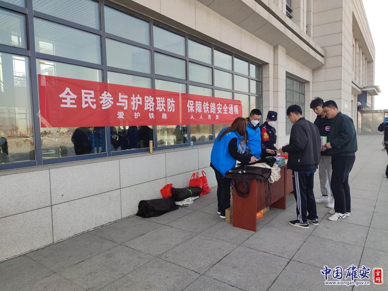 3月3日,雄县朱各庄镇第一小学50余名师生来到白沟站,会同车站青年志愿者进行爱路护路宣传,向过往乘客讲解爱路护路的重要意义,传递爱路护路知识。活动现场,白沟站指派专人讲解旅行常识,从进站安检、购票、候车,到检票进站、乘坐电梯、上车等各个环节进行提示。霸州西站派出所民警进行了爱路护路知识讲解,普及《中华人民共和国铁路法》铁路安全管理条例》等相关规定,严禁在铁路沿线摆障、石击列车,严禁破环和进入高铁围墙、护网,严禁在高铁桥下挖沙取土,严禁在铁路沿线燃放孔明灯和放风筝等。青年志愿者以及小学生引导旅客购票、候车,为广大旅客发放爱路护路宣传材料,传递爱路护路知识。