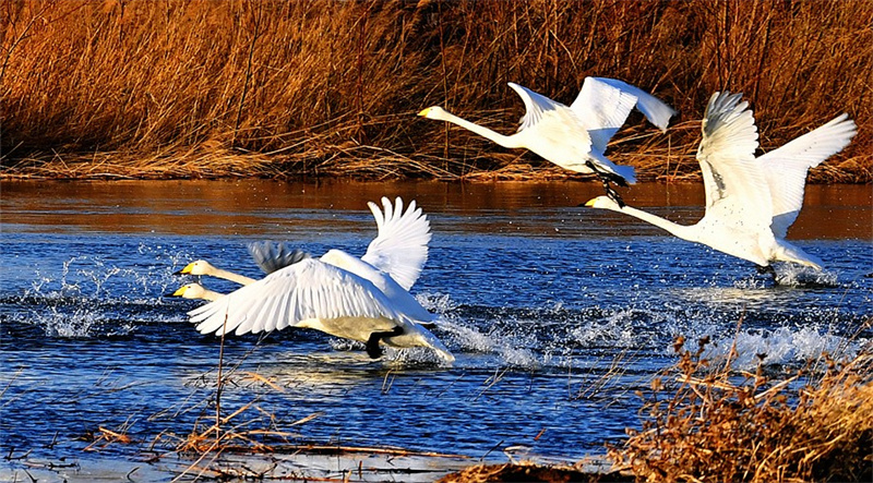 2月28日,美丽的天鹅在张家口怀来县官厅水库国家湿地公园飞舞。作为首都水源涵养功能区和京津冀生态环境支撑区,河北坚定不移走生态优先、绿色发展之路,坚决筑牢首都生态安全屏障。天蓝、地绿、水秀……美丽河北生动场景在初春景致中愈显灵动、精致。