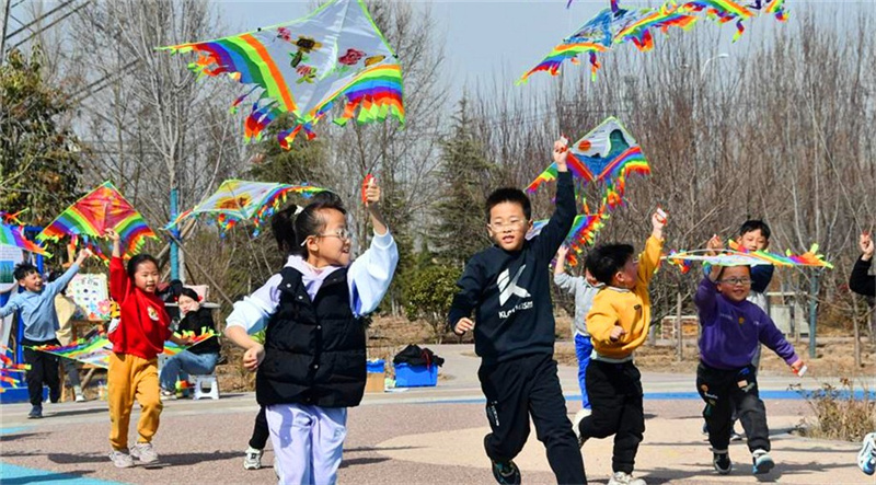 3月4日,邯郸市永年区开展“拥抱自然 放飞春天”主题活动,孩子们在工作人员的带领下,绘制并放飞风筝,感受户外运动快乐,乐享春日美好时光。