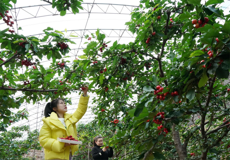 近日,河北省秦皇岛市山海关区的大棚樱桃开始成熟,吸引许多游客前来采摘。目前秦皇岛市山海关区樱桃树面积达3万亩,年产樱桃2万多吨,年产值4亿元,助力乡村振兴新景致。