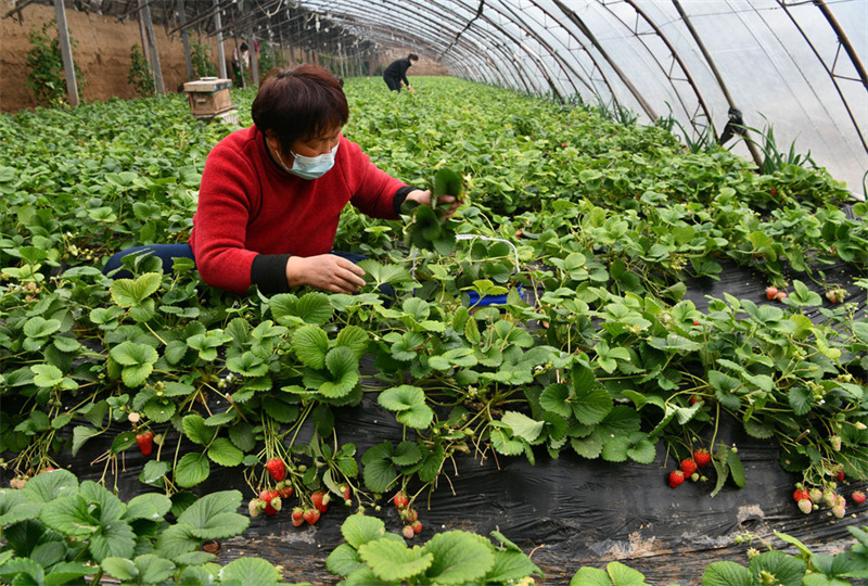 2月24日,种植户在石家庄市栾城区范台草莓种植基地管理草莓。近年来,河北省石家庄市栾城区着力发展现代都市型农业,加快特色优势蔬菜、优质水果示范基地建设,发展草莓、樱桃采摘,推进农业提质增效。