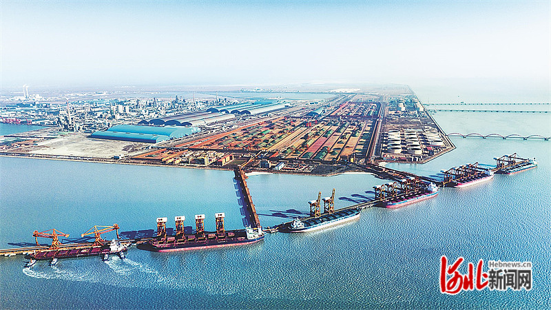 繁忙的唐山港曹妃甸港区矿石码头。(资料片) 河北日报通讯员季春天 摄