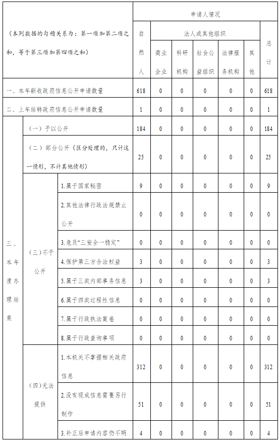 三、收到和处理政府信息公开申请情况