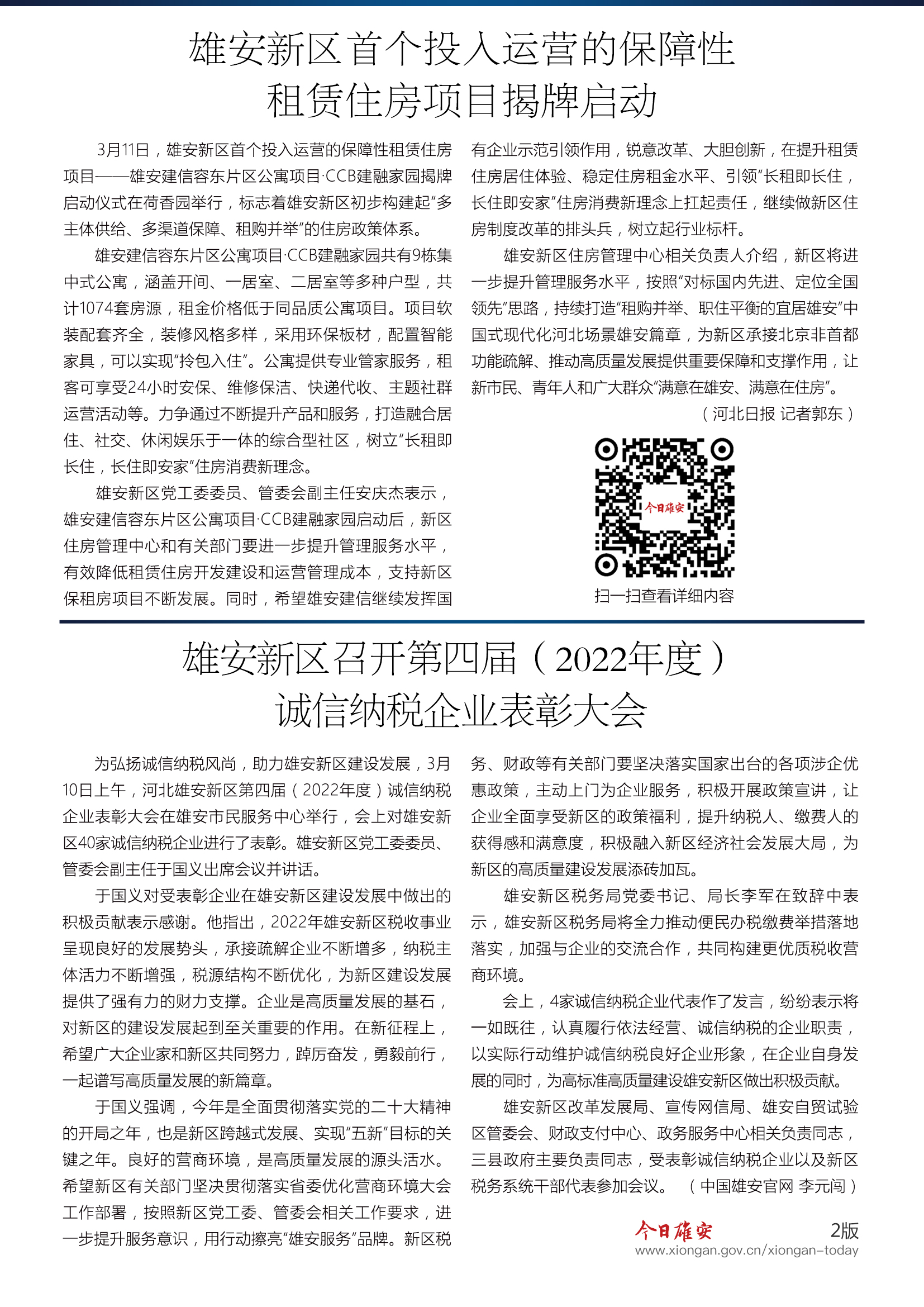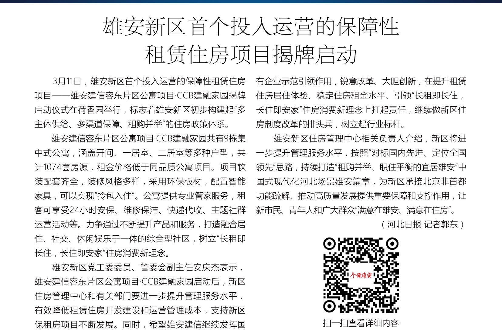 雄安新区首个投入运营的保障性租赁住房项目揭牌启动