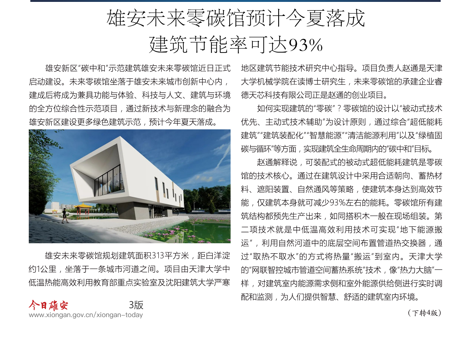 雄安未来零碳馆预计今夏落成,建筑节能率可达93%