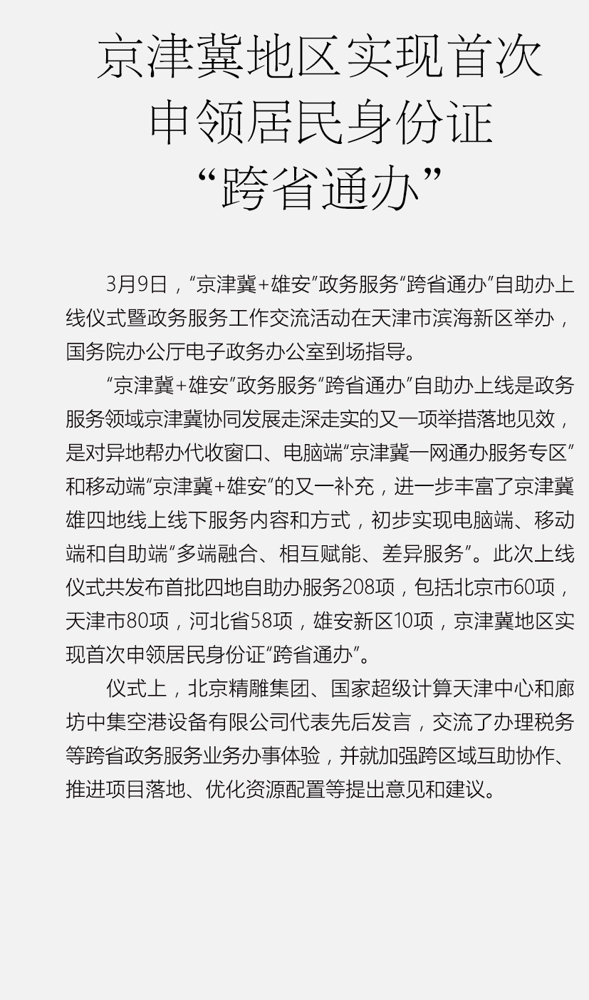 京津冀地区实现首次申领居民身份证“跨省通办”