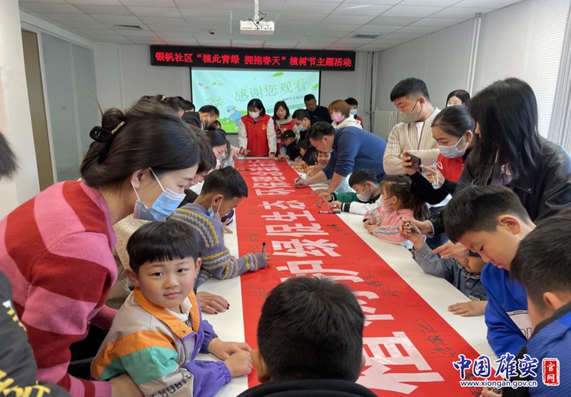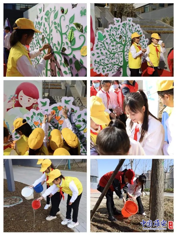 3月10日,在容西片区社区、学校和公园,志愿者、社区居民、建设者、老师、学生等纷纷携手而行,孩子们通过图片、儿歌、视频等各种形式了解到“植树节”的来历、植树的意义以及爱护小树苗的常识等,大家积极参与,为美丽的雄安春天植一片新绿,为“未来之城”再增生态底色。