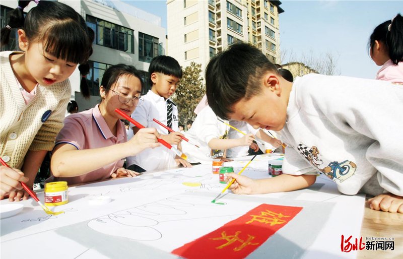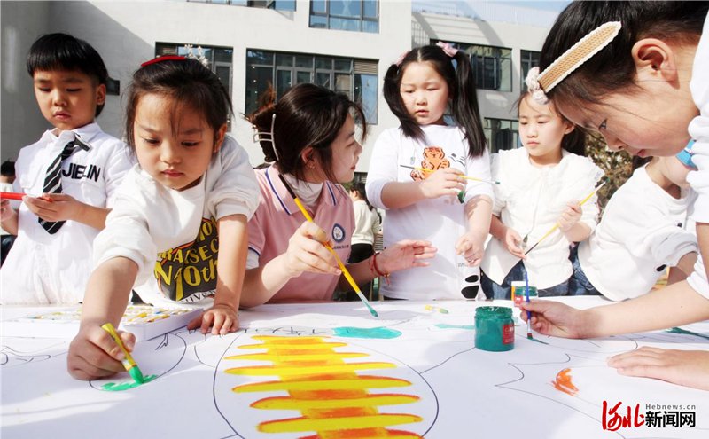 3月10日,容和悦泽幼儿园的师生们手绘百米长卷“春天的愿望”。河北新闻网记者刘光昱 摄