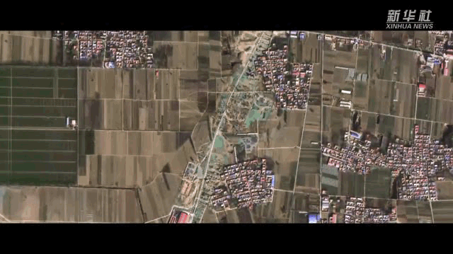 拼版照片:上图为2017年3月的雄安新区容东片区卫星图;下图为2022年9月的雄安新区容东片区卫星图。