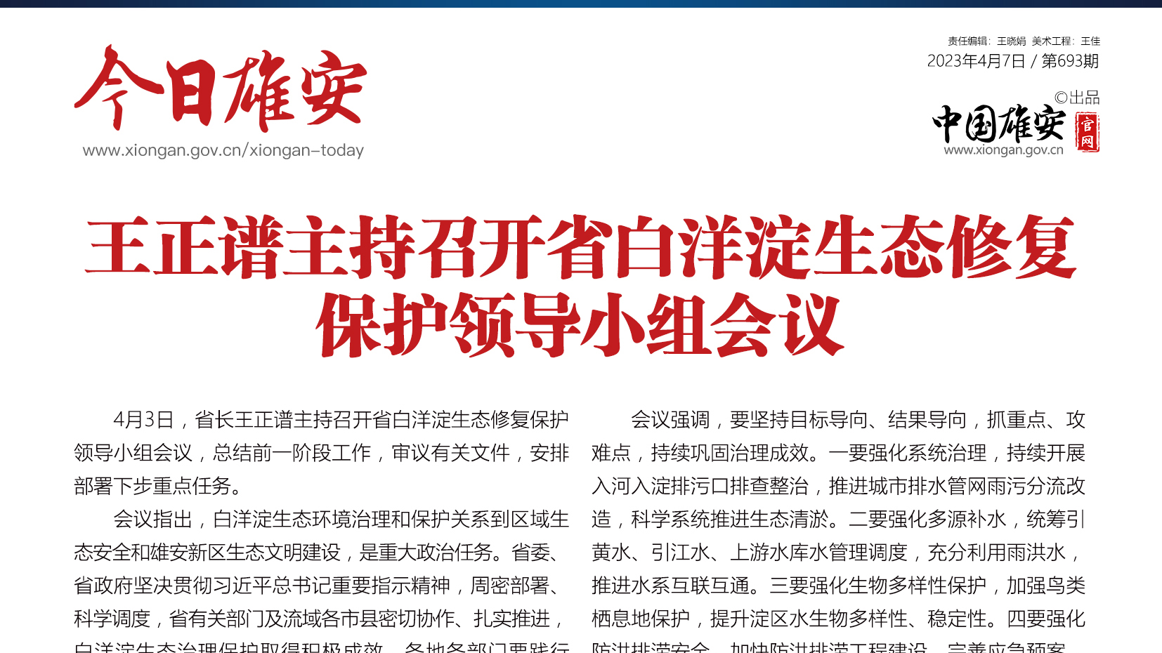 4月5日,河北省委常委,雄安新区党工委书记、管委会主任张国华调研重点项目建设及白洋淀生态环境治理工作。他强调,要全力推进重点项目建设提质增效,扎实做好白洋淀生态环境治理和保护,加快建设“妙不可言 心向往之”的典范城市。