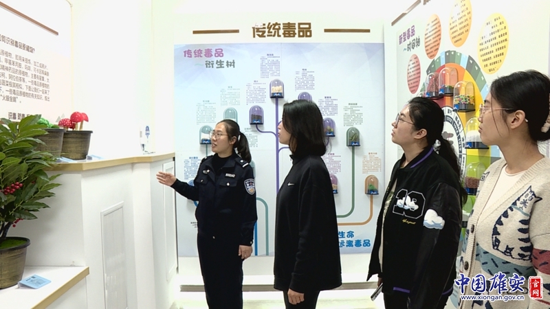 位于容东片区槐香河派出所东西孙社区警务室的互动式禁毒教育体验区分为五个基本区域,分别是识毒认毒区、禁毒历史区、VR互动体验区、毒品危害区、防毒拒毒区。