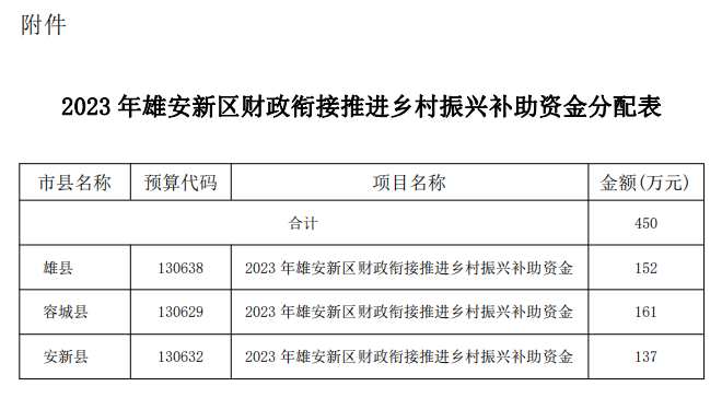 附件:2023年雄安新区财政衔接推进乡村振兴补助资金分配表
