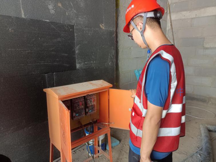 晋宁在施工现场进行临时用电安全检查。雄安新区公共服务局供图