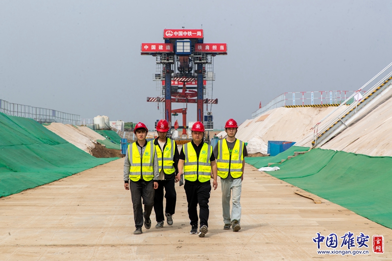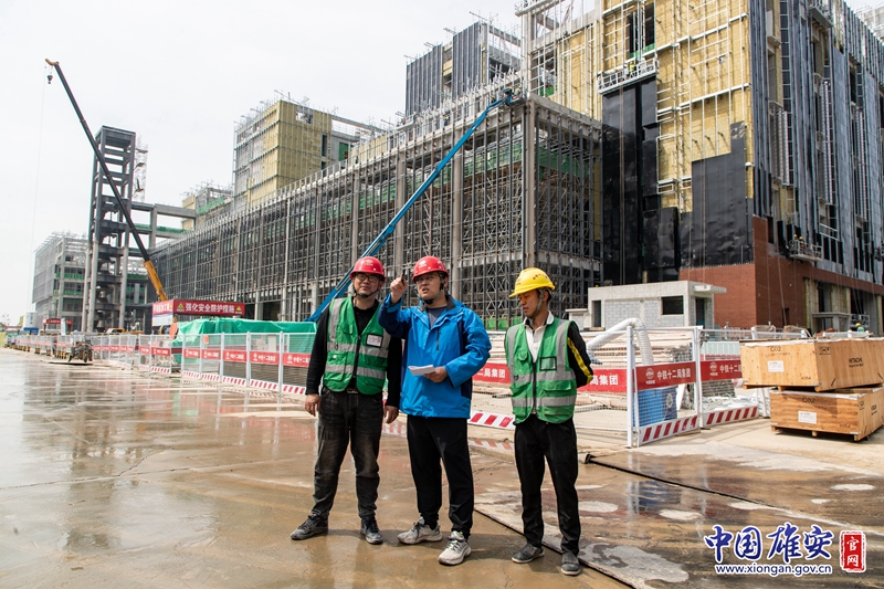 雄安新区启动区雄安创新研究院科技园区项目01地块负责人李震(右二)。中国雄安官网高盟 摄