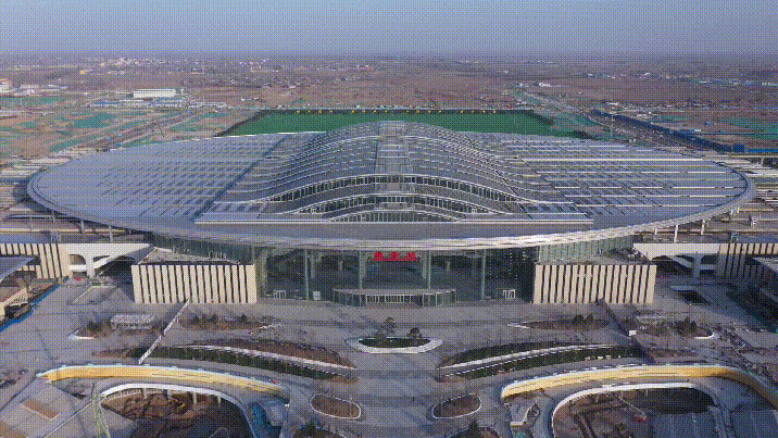 京雄城际铁路雄安站站顶分布式光伏电站(2023年3月23日摄,无人机照片)。新华社记者牟宇 摄