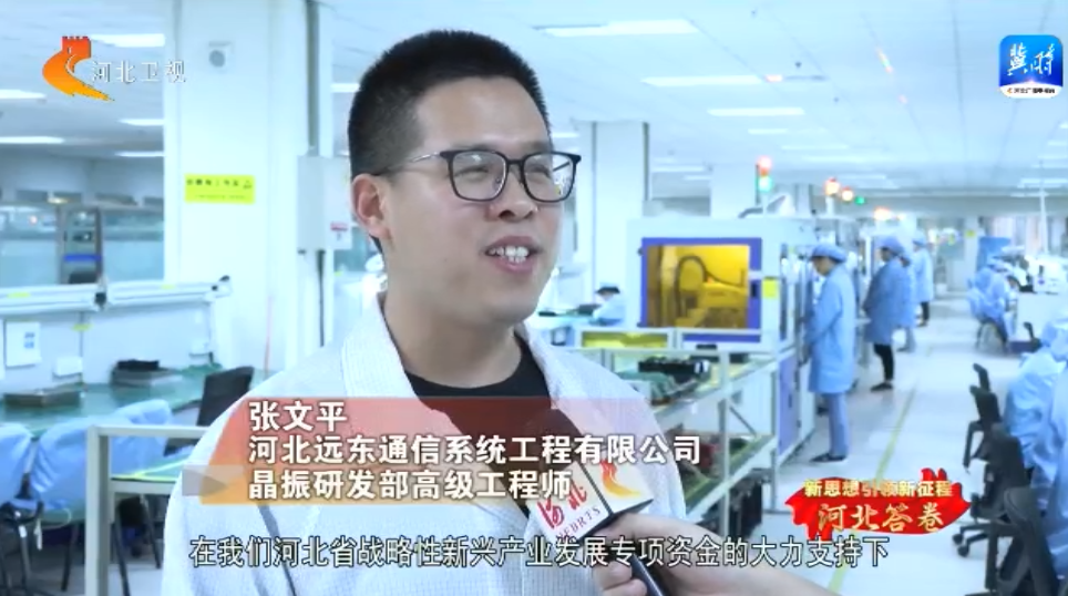 河北远东通信系统工程有限公司晶振研发部高级工程师 张文平:在我们河北省战略性新兴产业发展专项资金的大力支持下,我们建成了这条生产线,实现了我们高端恒温晶振年产量突破200万只,年出货量全球领先。