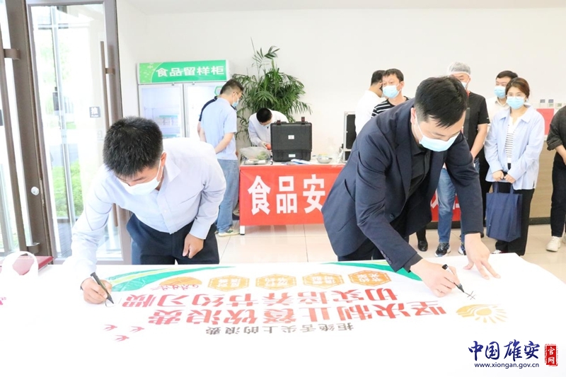 制止餐饮浪费主题签名现场。雄安新区综合执法局供图