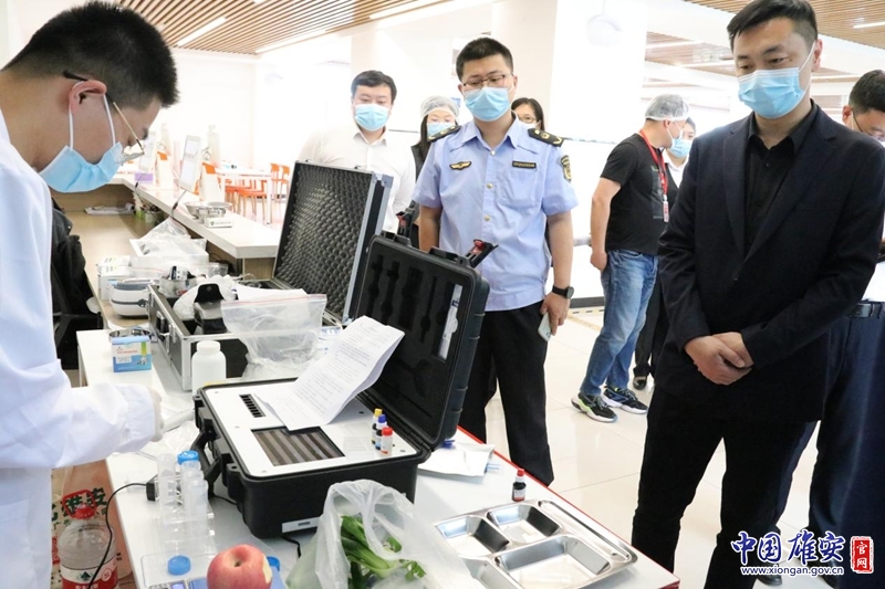 工作人员对食堂进行检查。雄安新区综合执法局供图