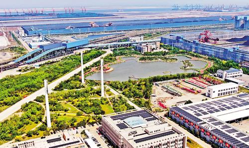 5月12日,航拍下的黄骅港煤炭港区内景色。如今这里已成为一座鸟语花香的“海岸花园”。河北日报记者张昊 摄