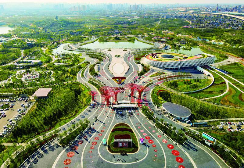 在“拆、清”取得阶段性成果的基础上,以“治、用”全面推进唐山花海生态修复和转型发展。唐山花海核心区规划占地11.02平方公里,空间结构为“一带三园”:“一带”为唐山花海区域内最美超级绿道,连通大城山-凤凰山-南湖的生态绿廊;“三园”为南区花海田园、中区花海乐园、北区花海园博园。“治”,就是实施生态修复工程,围绕“山湖路树”四大工程展开,重点建设市民健身步道、建筑垃圾堆叠塑形、原有采煤塌陷坑治理、绿化造林等,完成绿化种植439万平方米,全面改善生态环境面貌。“用”,就是产业运营,坚持市场化手段,南区已经实施“火红年代”文创园、惠远塔健康中国·中医药文化体验馆、玖熙堂国际文化艺术中心、鸾栖1403文创园、星球体育全民健身基地等项目;中区已经实施航空航天产业园、唐山市动物园、凤凰花卉等项目;北区2021年成功举办河北省第五届(唐山)园林博览会,重点打造“一台(畅观台)、三馆(园林艺术馆、公共安全实训馆、智慧生活馆)、五院(皇家山水院、唐风院、苏州院、山地院、岭南院)、九桥(九座古典园林桥)、十八展园(省内十三个地市展园和五个专类展园)”的建筑格局。