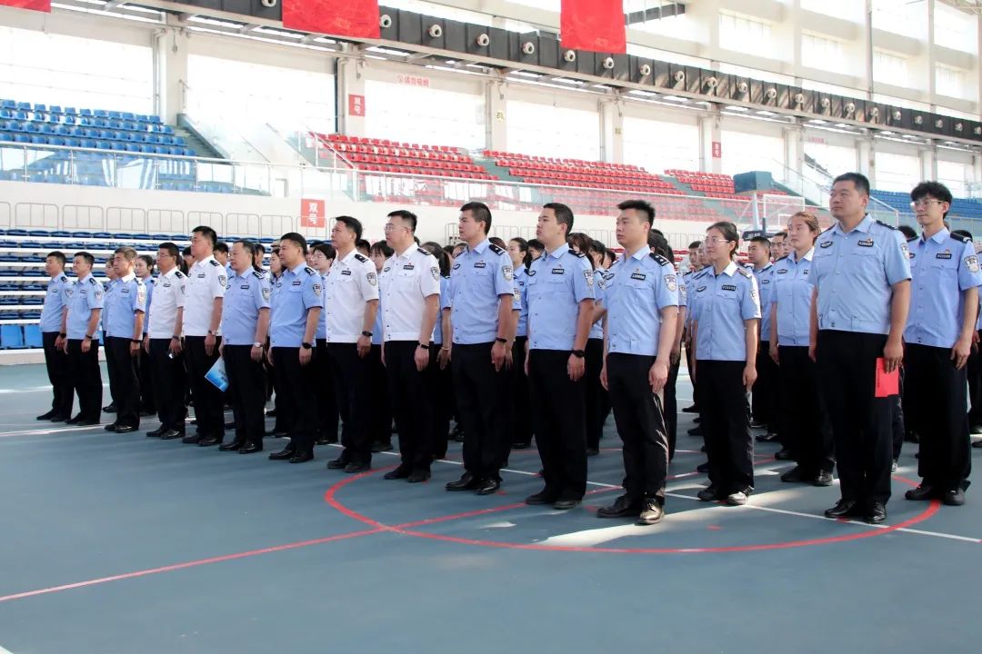 为了丰富警营文化生活,浓厚体育文化氛围,按照雄安新区公安局警营文化建设“十个一”系列活动安排,5月18日,新区公安局在容城体育馆举办了以“强体魄·铸铁军”为主题的警体运动会。新区公安局党委副书记、政委郑永丰,局党委委员、政监部主任赵树璘出席开幕式,局属各部门主要负责同志,局属各党支部参赛运动员、裁判员、党员志愿者等百余人参加开幕式。