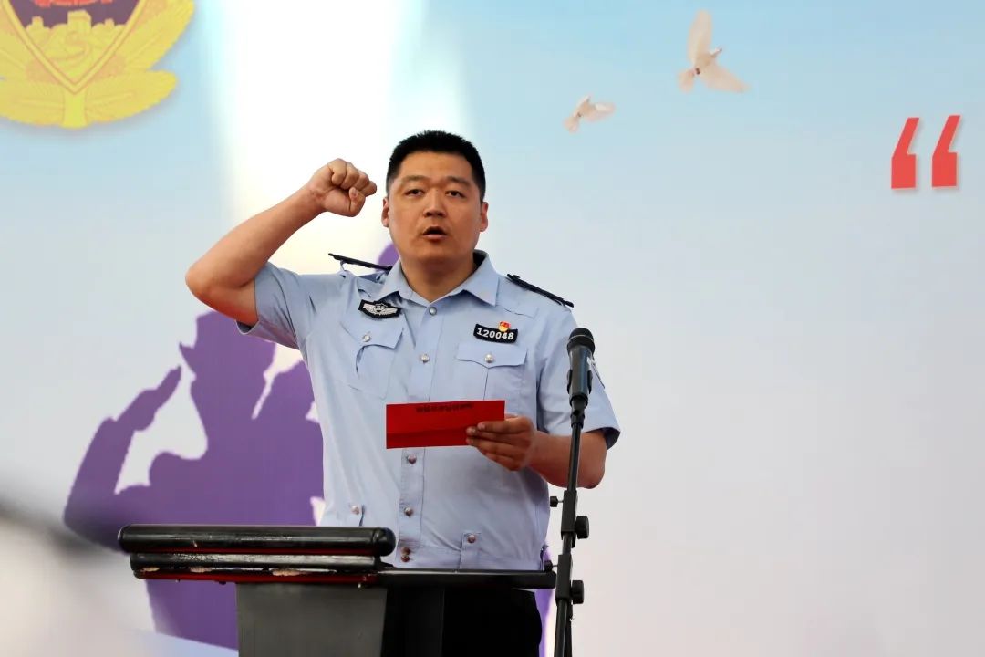 开幕式现场,全体人员队列整齐、警容严整,庄严奏唱中华人民共和国国歌,裁判员代表和运动员代表分别进行宣誓。