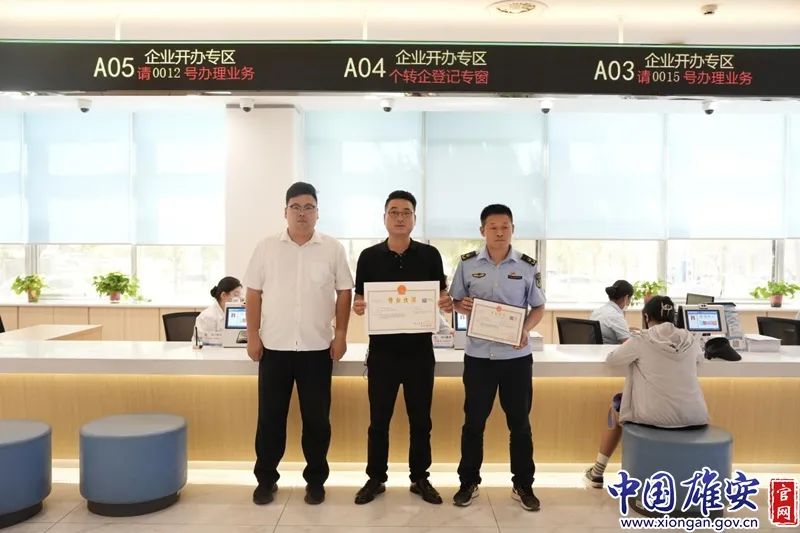 “审批快,工作人员还提供咨询、讲解、办理、印章刻制等免费服务,没过一会儿,我就升级成功啦。”雄安新区首张“个转企”营业执照申领者沈先生说。