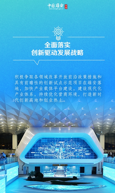 雄安新区将实施七项措施,牢记嘱托不负使命,以更大的气魄和力度推动创新驱动发展,努力开创高标准高质量建设新区新局面。