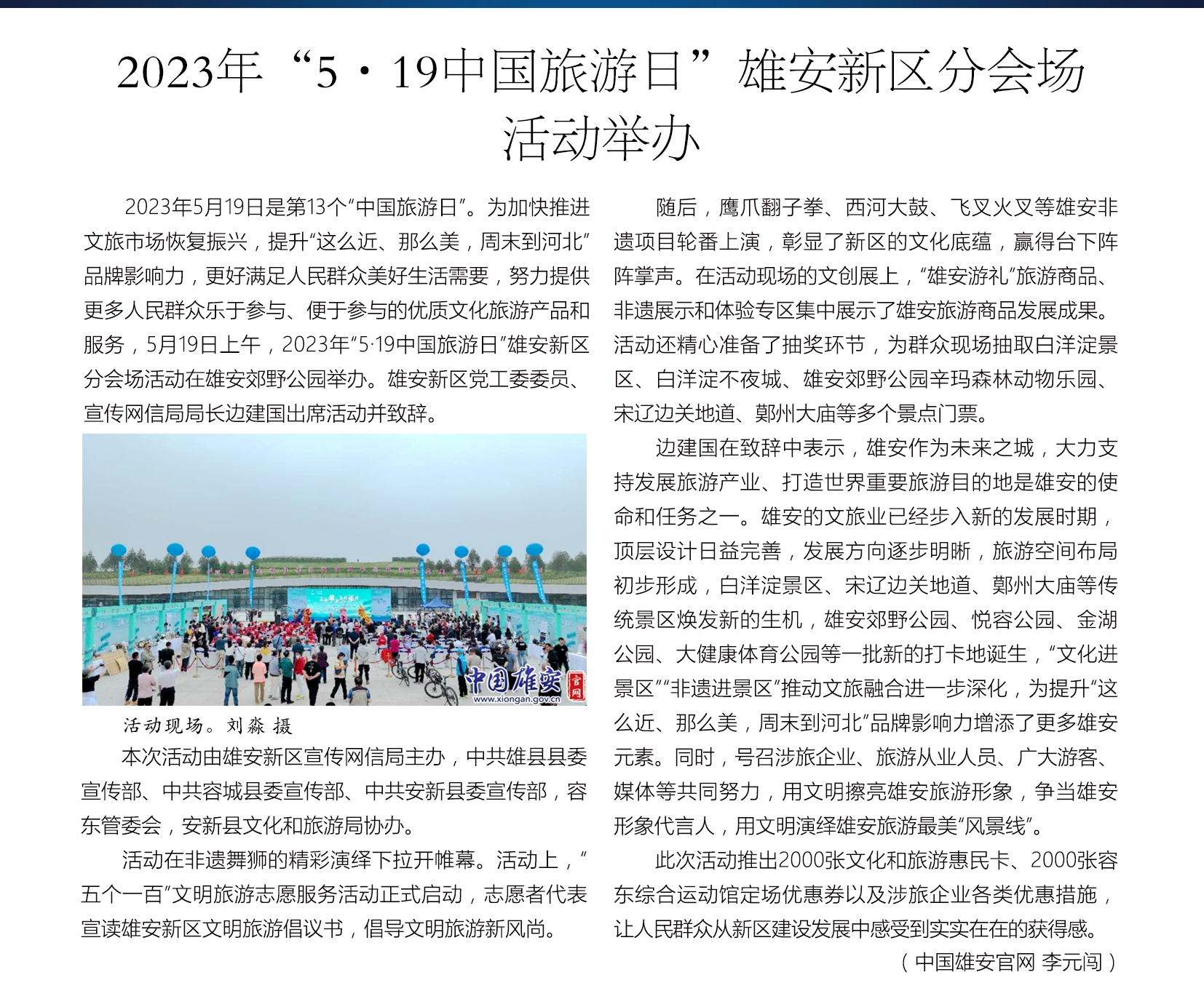 “未来雄安,美好旅程”!2023年“5·19中国旅游日”雄安新区分会场活动举办