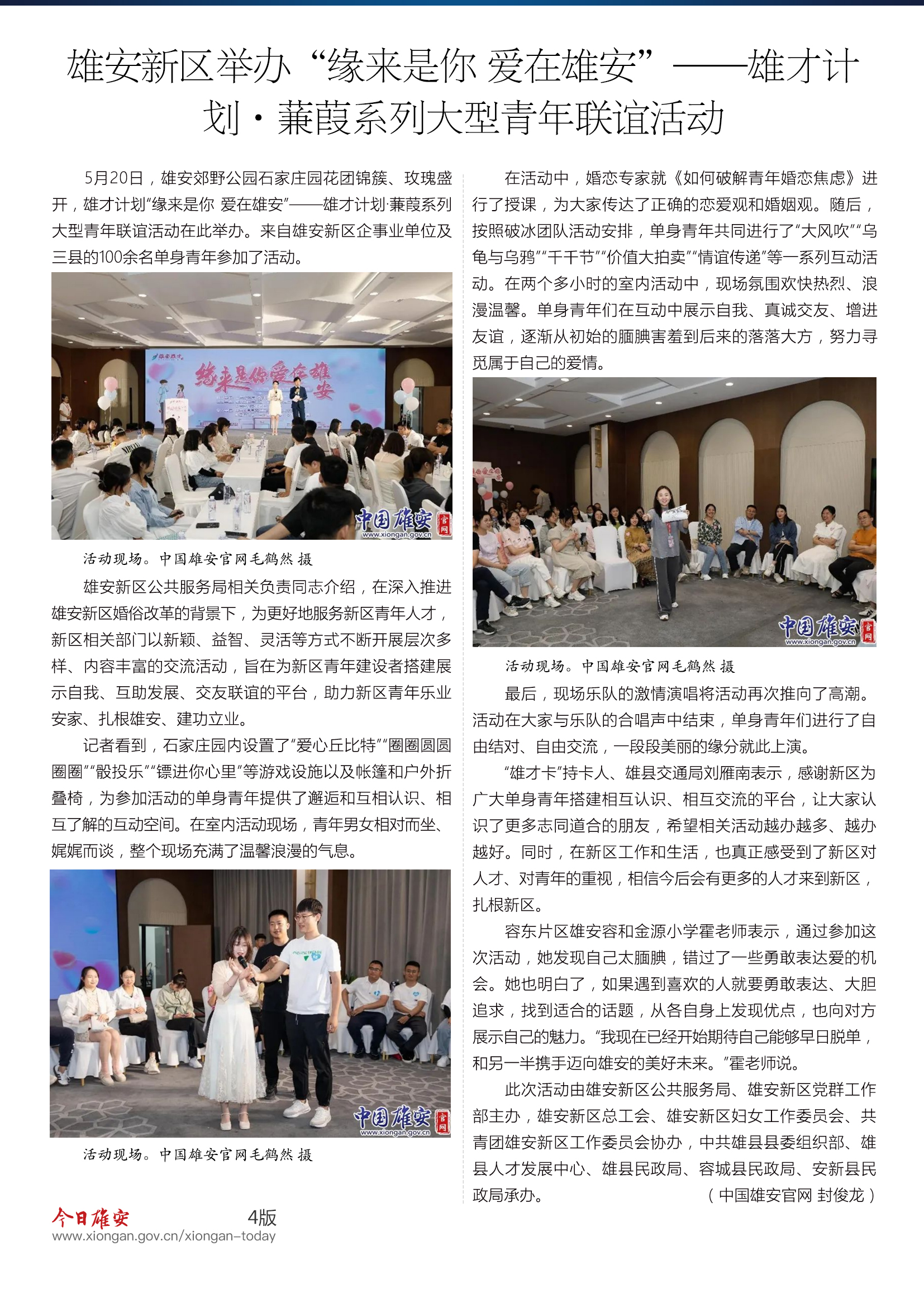雄安新区举办“缘来是你 爱在雄安”——雄才计划·蒹葭系列大型青年联谊活动