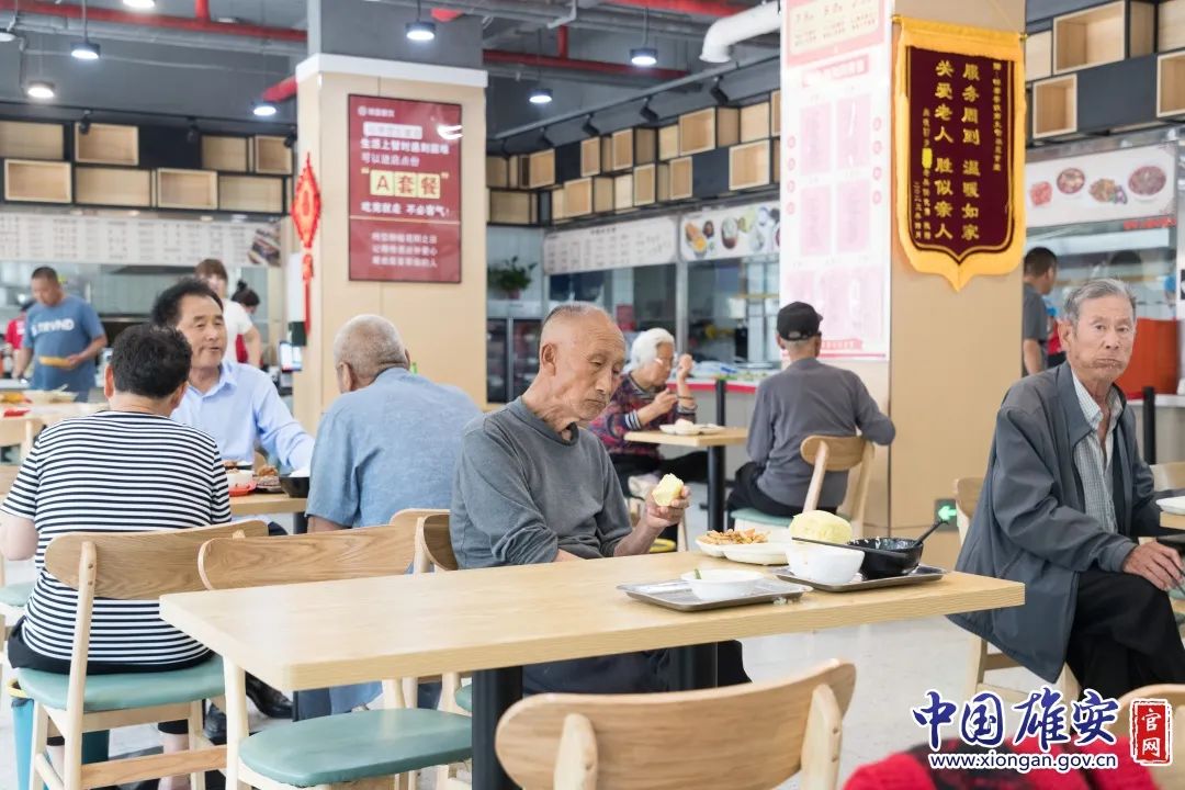 南文营社区的居民段文林(中)在社区食堂就餐。中国雄安官网李鑫 摄