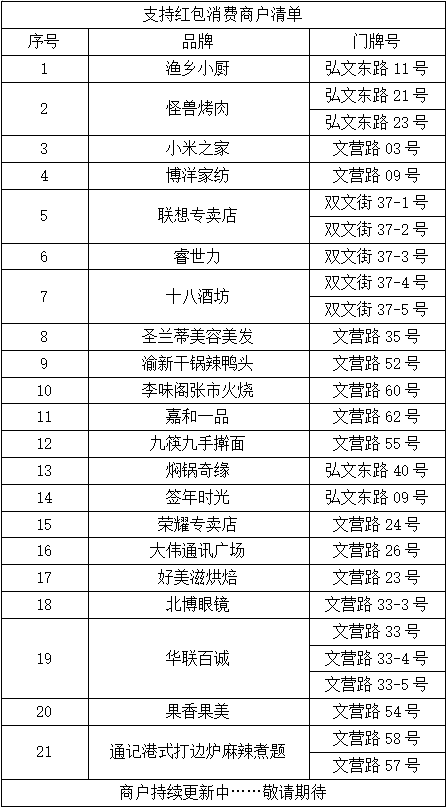 本次活动红包仅支持雄安新区容东片区指定商户受理。参与活动商户名单如下: