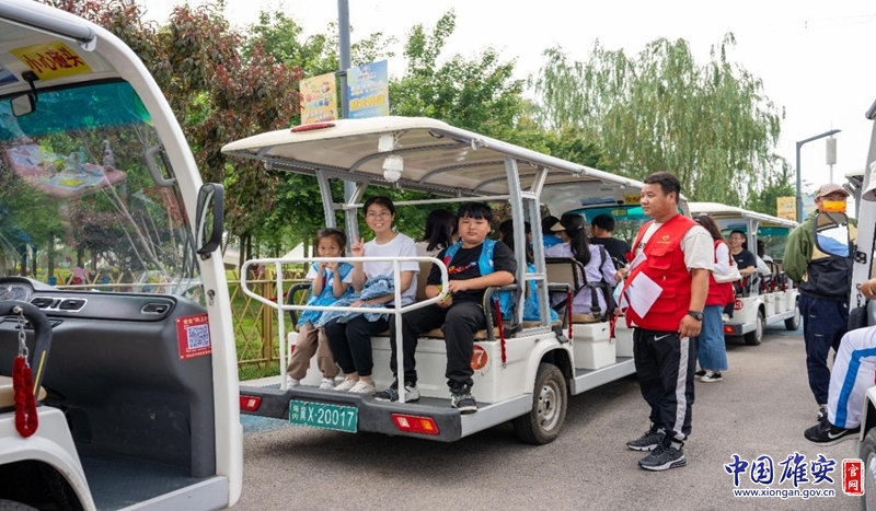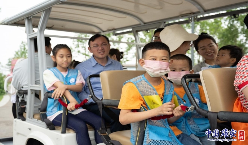 小朋友和家长乘车前往雄安郊野公园秦皇岛园。薛志勇 摄