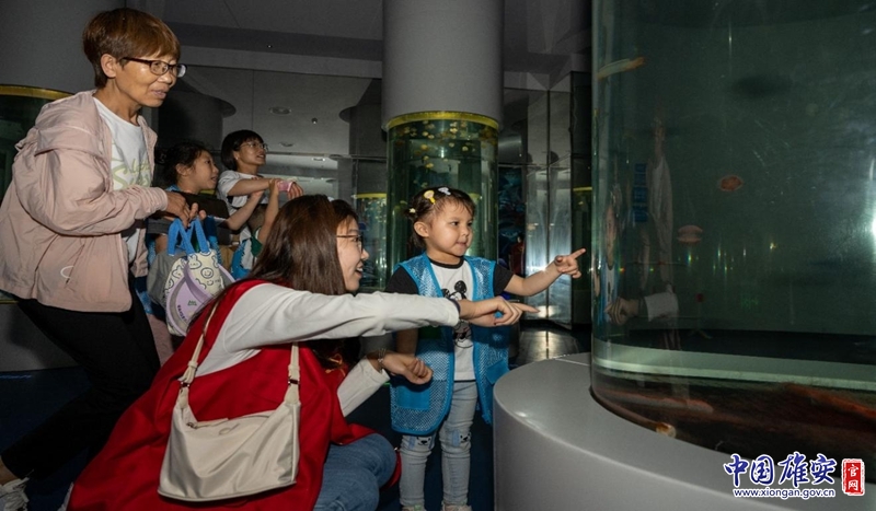 夏日微风中,小朋友和家长一起乘车来到雄安郊野公园秦皇岛园。孩子们观看了神奇的海洋生物,学习了海洋知识,体验了一场奇妙的海洋之旅。