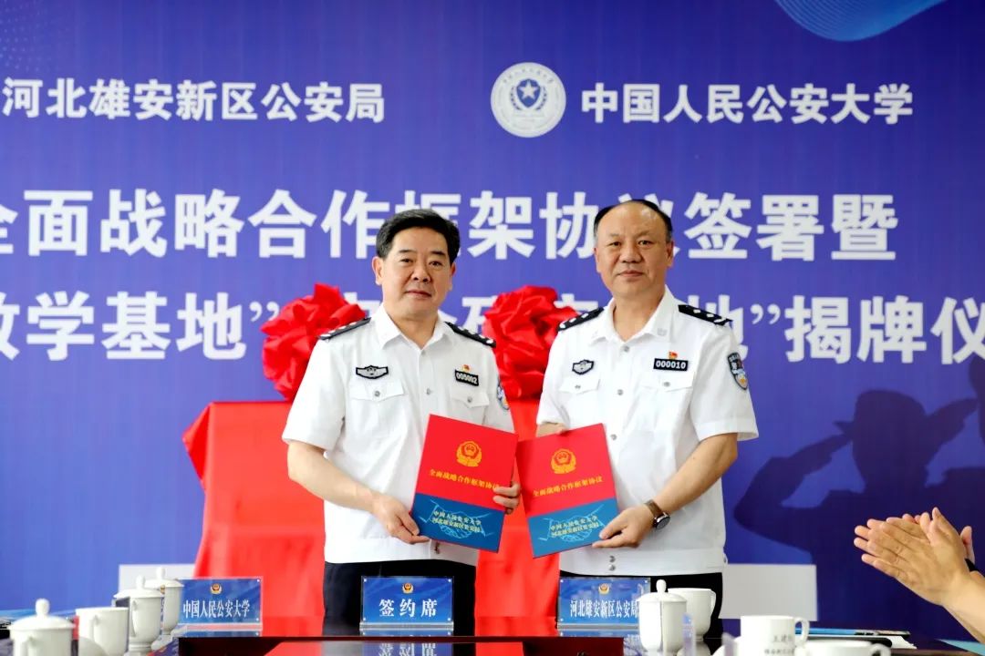 为深入学习贯彻落实习近平总书记在雄安新区考察时的重要讲话精神,充分发挥公安机关职能作用,支持服务保障高标准高质量推进雄安新区建设,5月30日上午,雄安新区公安局与中国人民公安大学举行全面战略合作框架协议签署暨“实践教学基地”“安全研究基地”揭牌仪式。