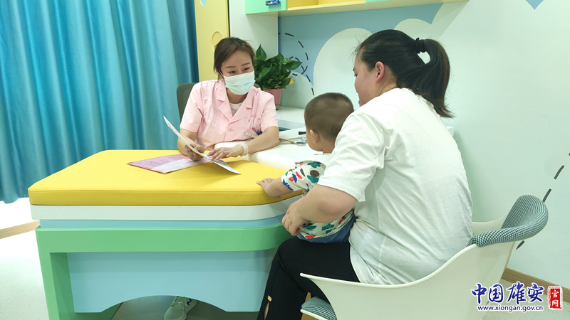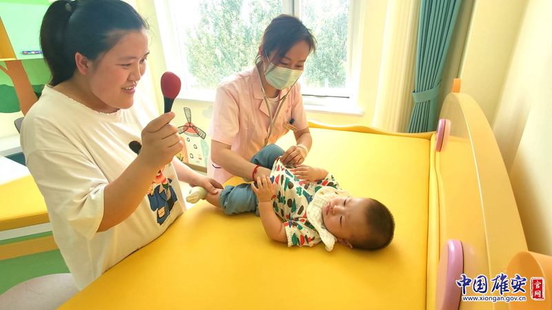 容城县妇幼保健院儿童早期发展中心医生在给小朋友做检查。中国雄安官网发