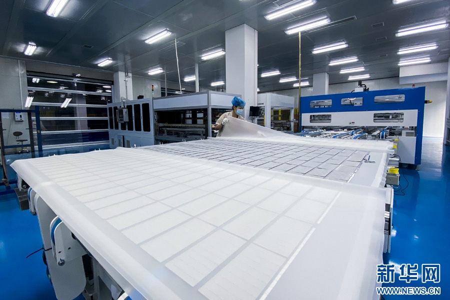 保定嘉盛光电科技股份有限公司车间内,工人正在进行敷设作业。甄真 摄