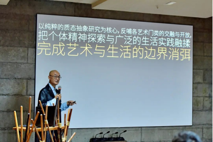 许燎源带来以《设计向未来转身》为主题的分享,通过包装设计、家居设计、雕塑设计、大运会火炬设计等多个门类与案例,分享了“物感主义”“新文物未来观”理论研究成果,为现代设计和当代艺术提供了崭新的视角与思路。许燎源提出,艺术本身应该是没有边界,没有门类概念的。雕塑、绘画、设计等融合为一体,不断延伸至现实生活,打破了原有的边界,应让艺术转化为所有产业的能量。