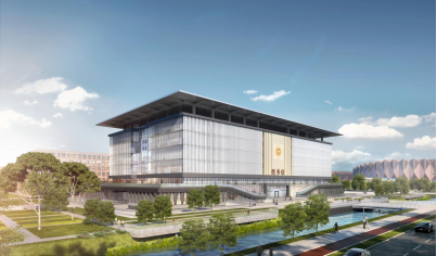 据介绍,雄安新区大学园图书馆建筑秉承中国传统建筑的三段式构图,立面设计以简牍为意向,折射出中国传统文化的韵味。建筑底层犹如翻开的书页,承托简洁大气的主体体量,并采用可调节外遮阳梭型百叶系统,营造出舒适绿色的室内光环境。