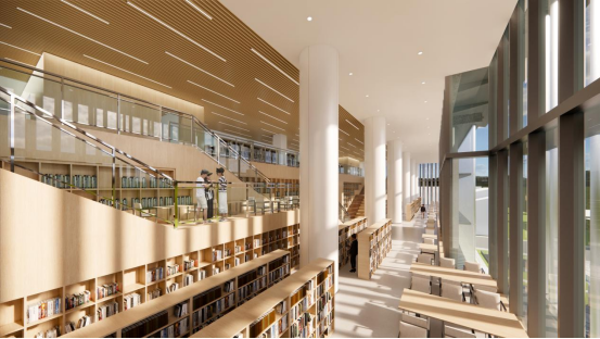 项目创新地将城市图书馆和高校图书馆的功能进行复合,首层二层服务于公众,三四五层服务于高校学生,六七层服务于科研人员,形成供区域市民、高校师生、科研人员进行学习、研究、交流的文化综合体。