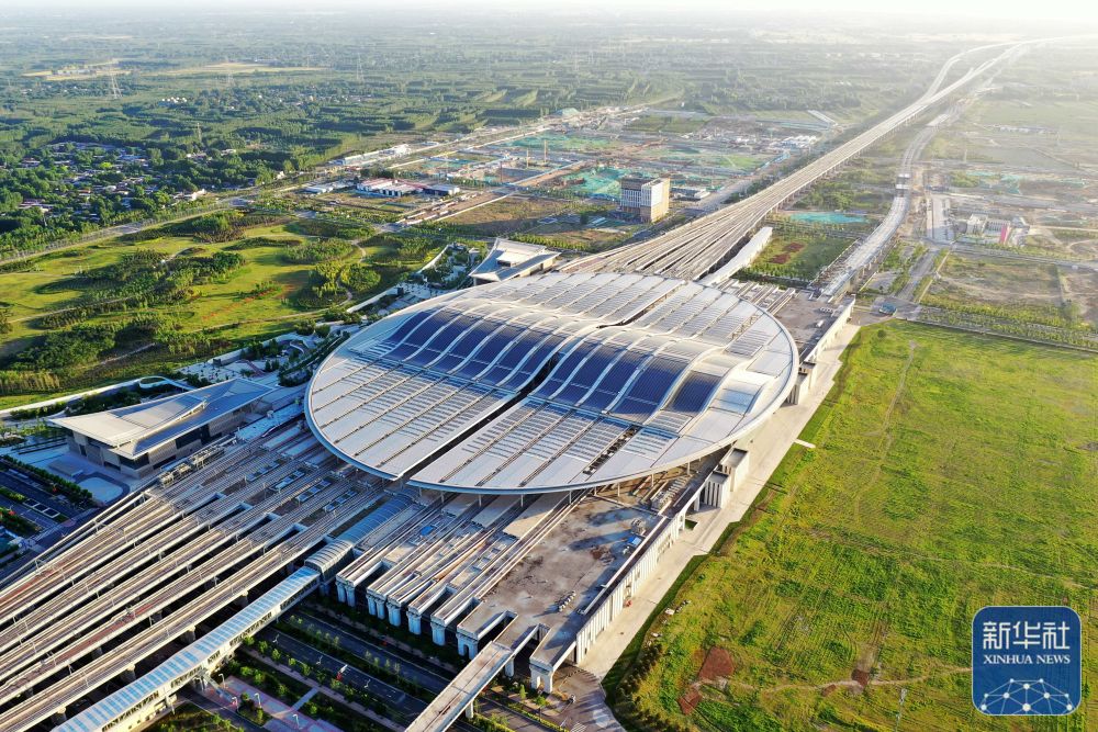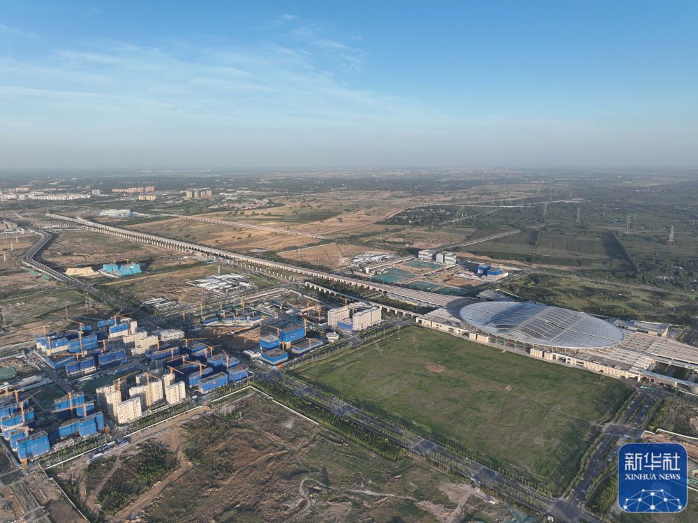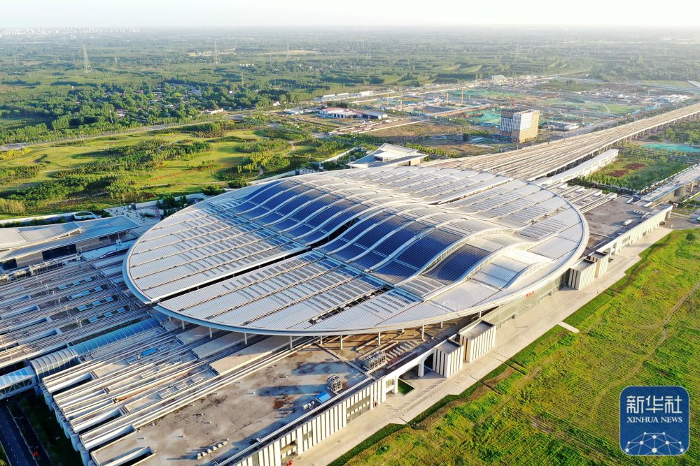 这是雄安站(6月2日摄,无人机照片)。雄安站位于雄安新区昝岗片区,是雄安新区开工建设的第一个重大基础设施项目,具有标志性意义。新华社记者邢广利 摄