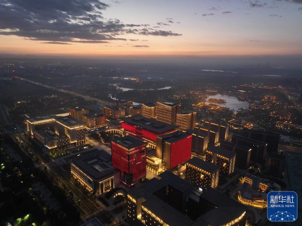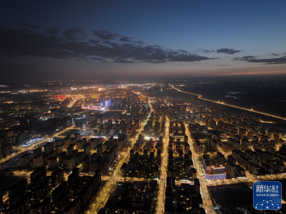 这是雄安新区容东片区夜景(5月31日摄,无人机照片)。容东片区是雄安新区首个集中建成区。新华社记者邢广利 摄