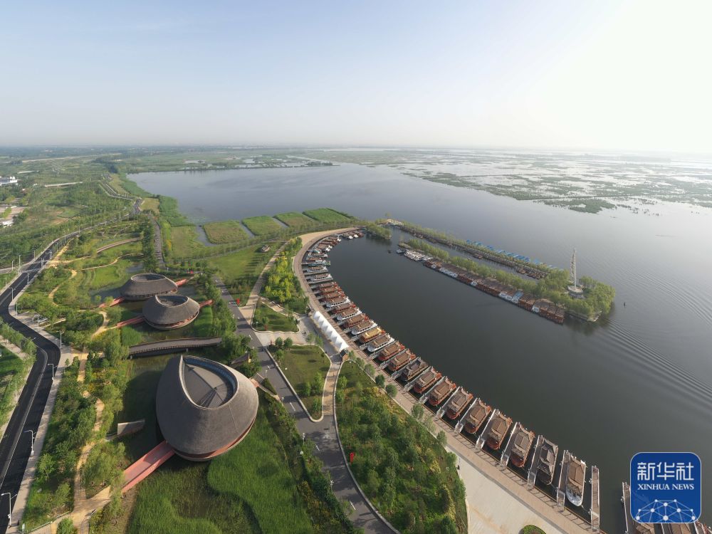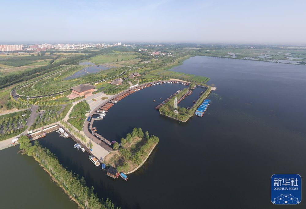 这是河北雄安新区白洋淀旅游码头景色(6月1日摄,无人机照片)。新华社记者邢广利 摄