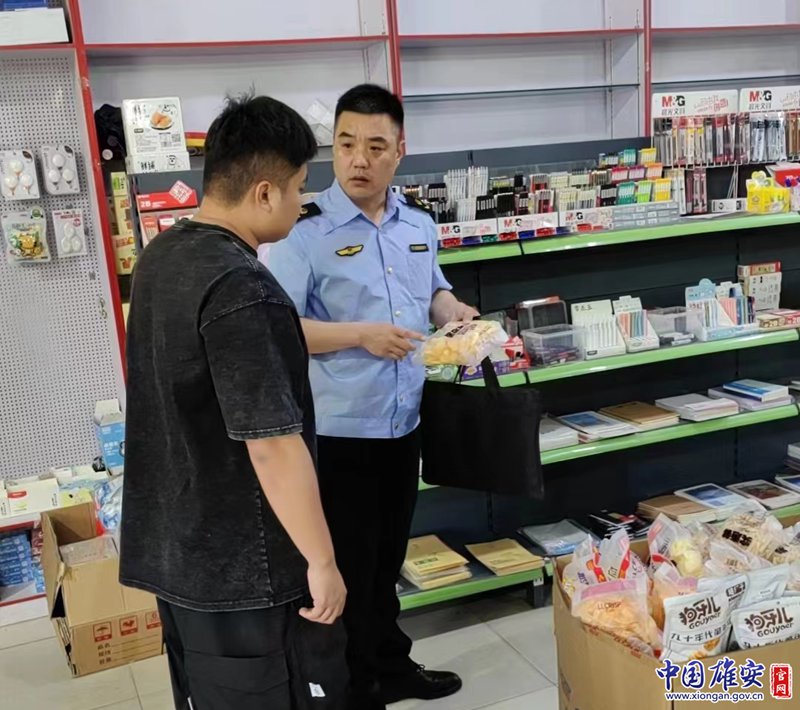 市场监管部门工作人员对校园周边文具店进行专项检查。雄安新区综合执法局供图