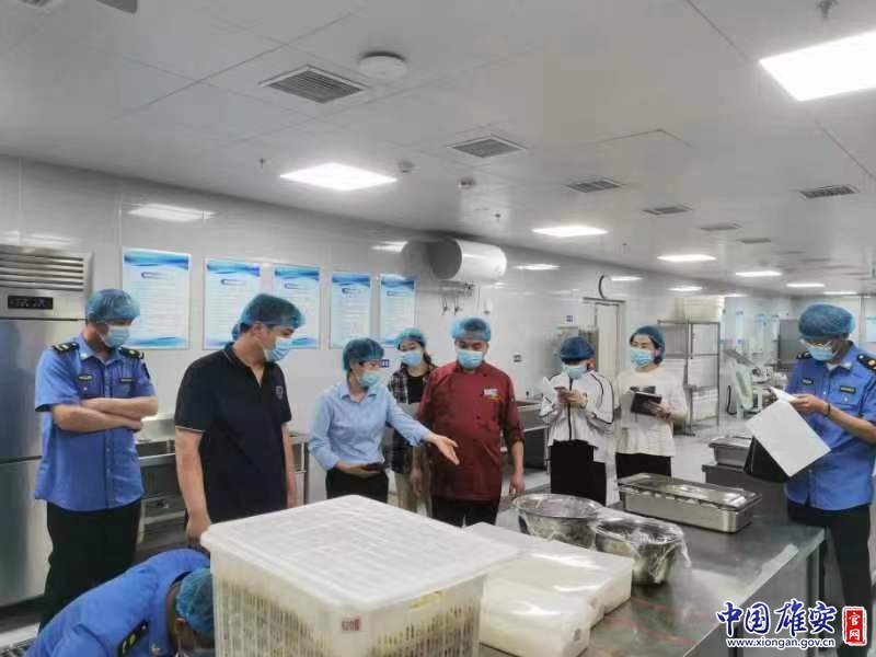 市场监管部门工作人员对校园食堂进行专项检查。雄安新区综合执法局供图