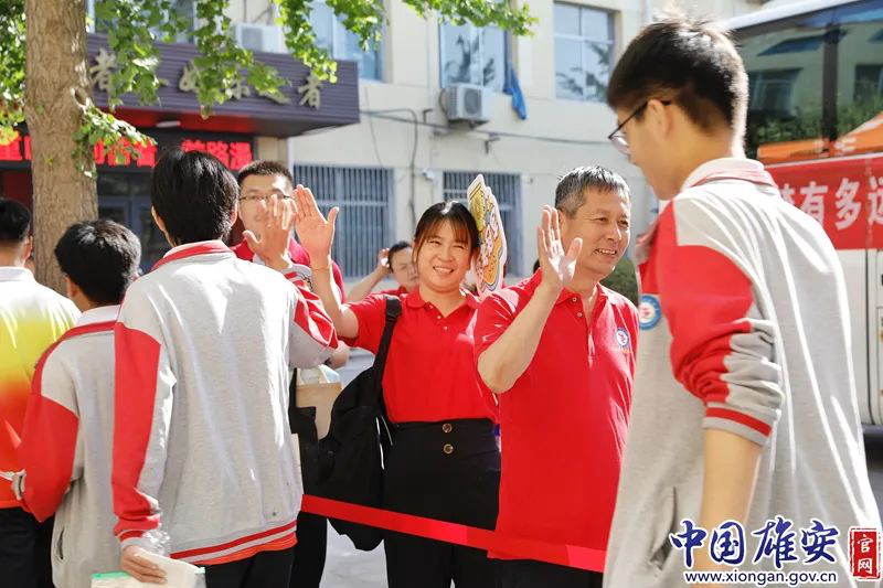 学生入场前,老师与学生击掌助力。中国雄安官网毛鹤然 摄