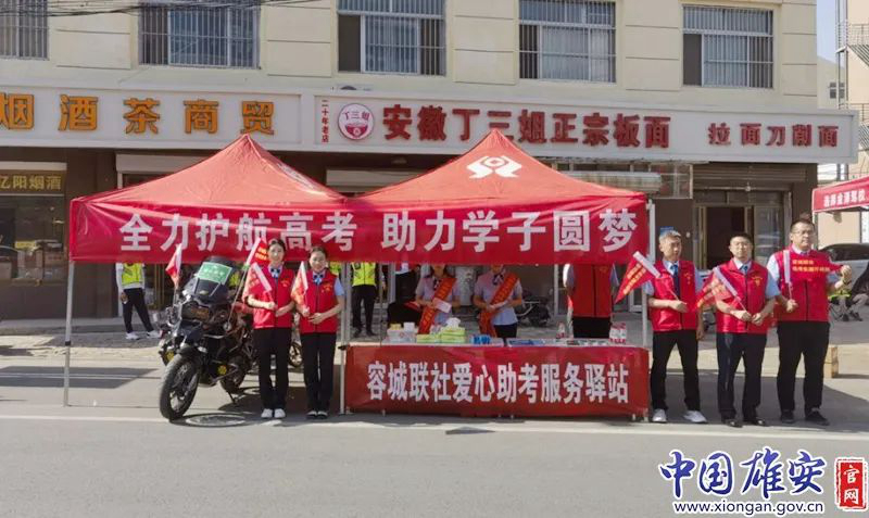 容城联社志愿服务队在考场外提供志愿服务。中国雄安官网李元闯 摄