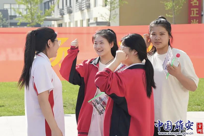 考生互相加油打气。中国雄安官网赵伟彤 摄