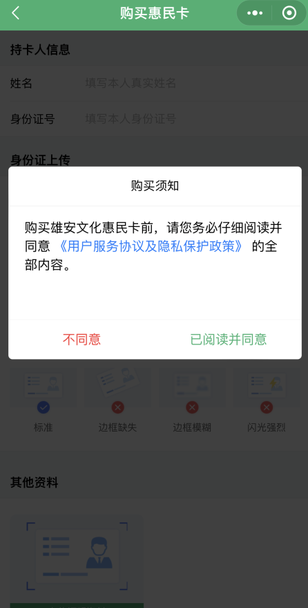 “雄安文化惠民卡”实行实名制注册购买,每人限购1张。雄安新区三县居民,凭身份证购买。非三县户籍居民,凭身份证及新区常住证明(居住证、工作证、单位证明等相关证明)购买。