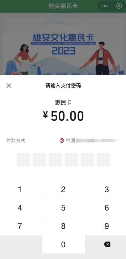 05 返回购买页面,点击“购买惠民卡”后支付费用。